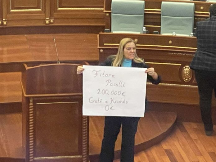 AAK me aksion simbolik në Kuvend: Fitore Pacolli 200 mijë euro, gratë e Krushës 0 euro