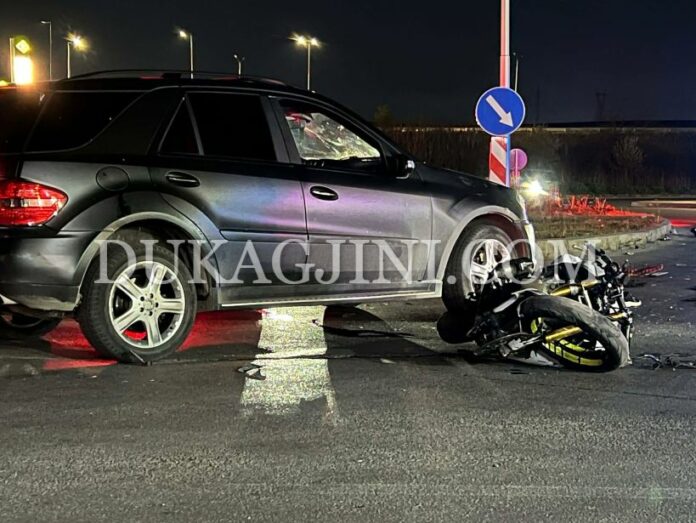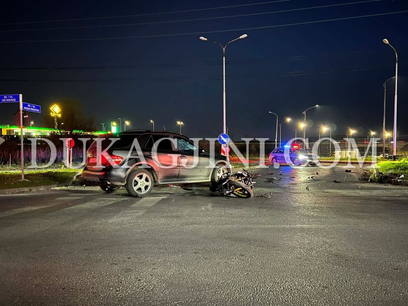 Në pamjet që ka siguruar Dukagjini, shihet se në aksident janë përfshirë një veturë dhe një motor teksa në vendin e ngjarjes është edhe Policia.