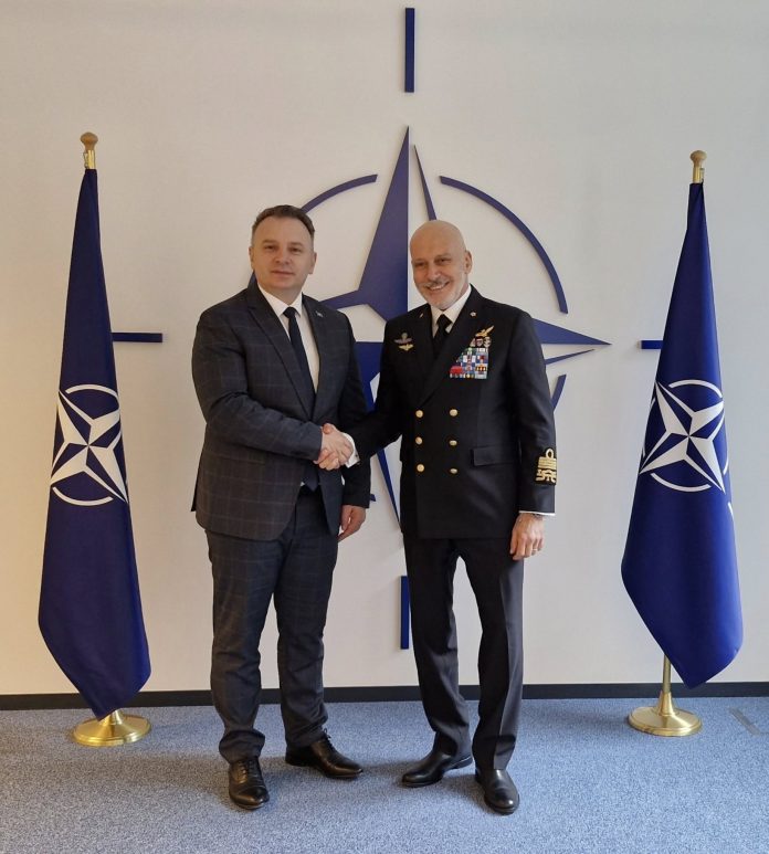 “Sot kam pasur nderin e veçantë të pritem në një takim të frytshëm pune në HQ të NATO-s nga Kryetari i ri i Komitetit Ushtarak të Organizatës së Traktatit të Atlantikut të Veriut (Chair of the Military Committee – NATO), Admirali Giuseppe Cavo Dragone.