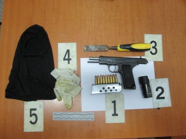 Policia ka thënë se i dyshuari kishte tentuar që të kryente vjedhje në një barnatore. Sipas njoftimit të PK-së thuhet se Rr.G. 35-vjeçar është ndaluar për 48 orë, ndërsa i janë gjetur dhe konfiskuar një pistoletë me nëntë fishekë dhe disa pajisje tjera që dyshohet se u përdorën nga i dyshuari.