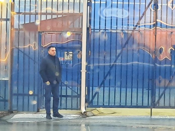Fahri Fazliu, djali i Fadil Fazliut, duke pritur jashtë zyreve të EULEX-it, ku po intervistohet babai i tij.