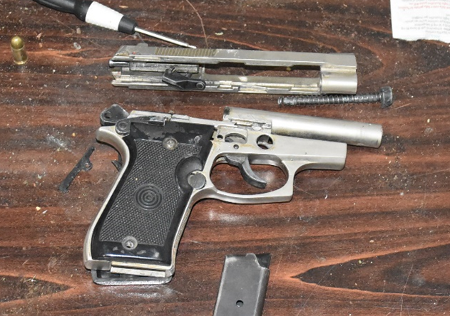 Po ashtu, janë gjetur dhe konfiskuar: një bimë kanabis sativa rreth 30 cm, marihuanë me peshë 1.19 gramë, gjethe kanabisi me peshë 53.84 gramë, dy qese me substancë të dyshuar kokainë me peshë 0.41 gramë, një armë zjarri (pistoletë) e çmontuar me dy fishekë, 27 fishekë të tjerë, një veturë dhe një furgon me targa vendore.