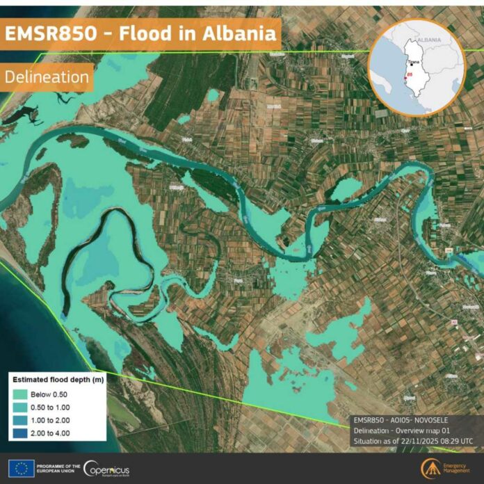 Reshjet intensive të ditëve të fundit kanë krijuar probleme të shumta në disa zona të vendit, ndërsa sistemi satelitor i Bashkimit Evropian për monitorimin e emergjencave natyrore, Copernicus, ka publikuar pamje të detajuara të përmbytjeve që kanë goditur zonën Vlorë–Novoselë gjatë fundjavës.