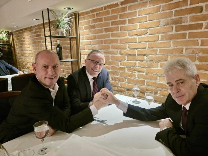 Kryetari i Partisë Demokratike të Kosovës (PDK), Bedri Hamza, ka publikuar një fotografi ku shihet duke shtrënguar duart me Ali Ahmetin dhe Ramiz Lladrovcin.
