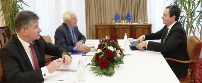 Janë publikuar pamjet nga faqja zyrtare e Bashkimit Evropian (BE) të takimit në mes të kryeministrit të Kosovës, Albin Kurti dhe kryediplomatit evropian, Josep Borrell, në Ohër i shoqëruar edhe nga emisari i BE-së, Miroslav Lajçak.
