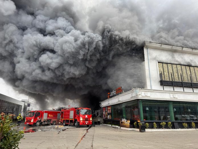 Zëdhënësi i Policisë për rajonin e Prizrenit, Shaqir Bytyqi, ka bërë të ditur se është raportuar për përfshirjen e qendrës tregtare nga zjarri të dielën rreth orës 6:17.  Në vendin e ngjarjes janë zjarrfikësit, policia dhe KEDS-i.