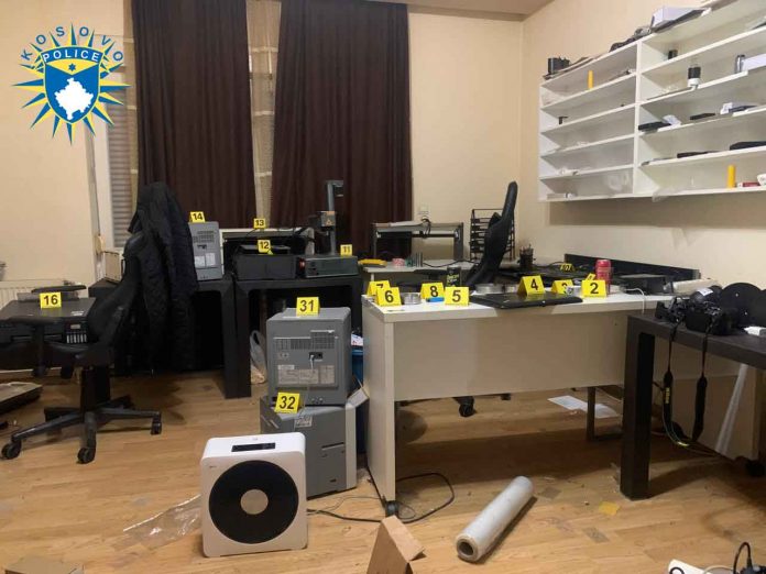Në një shtëpi të bastisur nga Policia e Kosovës janë gjetur edhe makina laserike, printer e madje edhe dokumente tashmë të përfunduara, të gatshme për shpërndarje.