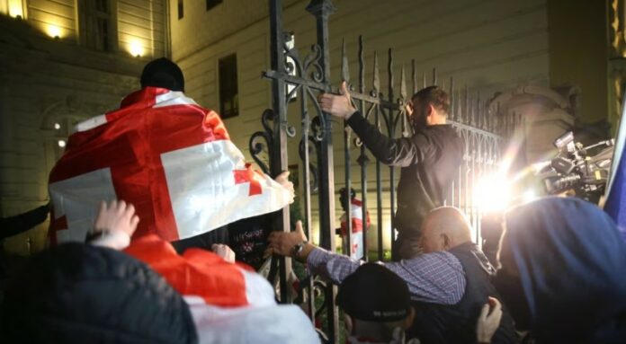 Policia e Gjeorgjisë ka përdorur të shtunën sprej piperi dhe topa uji kundër protestuesve që kanë tentuar të hyjnë në pallatin presidencial në Tbilisi.