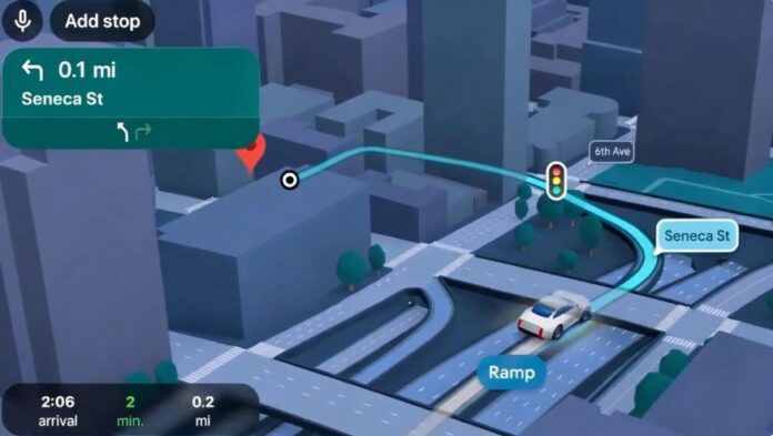 Përditësimi përfshin gjithashtu edhe një modalitet të ri navigimi, i cili ofron një pamje 3D më të detajuar të rrugëve, me paraqitje më të qarta të korsive dhe udhëzime më natyrale me zë për drejtuesit e automjeteve.