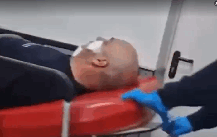 Pamje të publikuara nga vendi i ngjarjes tregojnë të dyshuarin të shtrirë në QKUK, nën mbikëqyrje të policisë.
