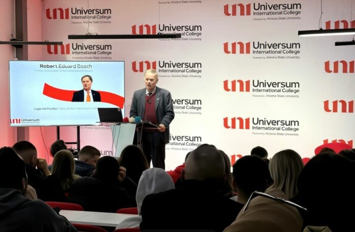 Në kampusin e UNI – Universum International College u mbajt një ligjëratë publike me Robert Eduard Bosch, ish-Ambasador i Mbretërisë së Holandës në Kosovë, me temën “Çfarë përfshin diplomacia e mirë?”.
