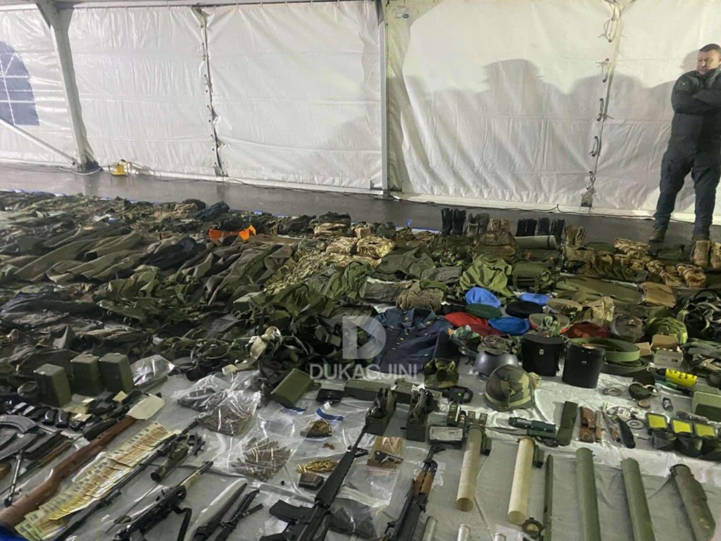Hoxha ka thënë se gjatë bastisjeve të sotme kanë konfiskuar mbi 200 uniforma ushtarake, 6 zolla, 3 granata dore, 2 armë AK47, 1 revole, municion të kalibrave të ndryshëm, fitila ndezës për inicim të lëndëve plasëse, helmeta ushtarake, maska, thika, para dhe pajisje të tjera.