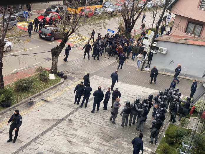 Në protestë janë hedhur gaz lotsjellës dhe mjete shpërthyese.