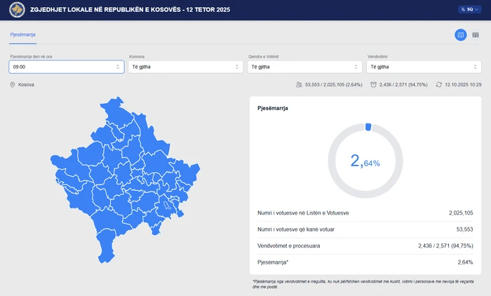 Komisioni Qendror i Zgjedhjeve (KQZ) ka aktivizuar platformën elektronike për publikimin e rezultateve preliminare dhe statistikave të pjesëmarrjes në zgjedhjet lokale të mbajtura më 12 tetor 2025.