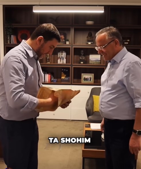 Në një video të publikuar në mediat sociale shihet se kandidati i PDK-së për kryeministër, Bedri Hamza ia ka sjellë këtë dhuratë Krasniqit, pas takimit që pati dje me Xhakën në Gjermani.