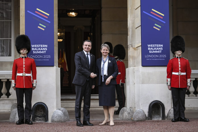 Në hyrje të Samitit, Kurtin e ka pritur Sekretarja e Shtetit për Punë të Jashtme e Mbretërisë së Bashkuar, Yvette Cooper.