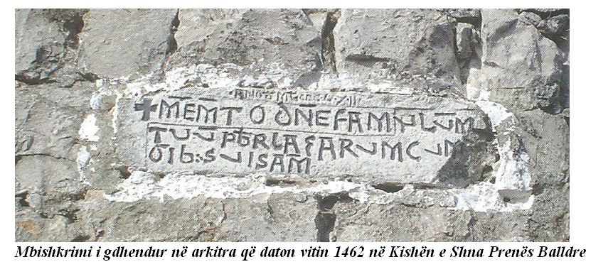 Për këtë kemi një dëshmi të vitit 1462. Mbishkrimi në arkitra, në kishën e Shna-Prenës në Balldre të Lezhës, që ndodhet edhe sot dhe u kushtohet Dukagjinëve të Perlatit të degës së Lekës së kanunit.