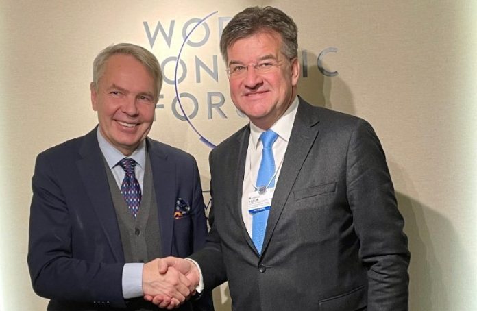 I dërguari i posaçëm i Bashkimit Evropian për dialogun Kosovë-Serbi, Miroslav Lajçak, në margjinat e Forumit Ekonomik Botëror që po mbahet në Davos të Zvicrës, është takuar me ministrin e Punëve të Jashtme të Finlandës, Pekka Haavisto, me të cilin, kanë diskutuar për dialogun në mes të Kosovës dhe Serbisë.