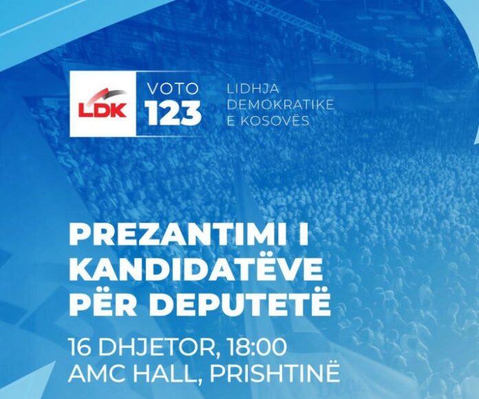 Kreu i Lidhjes Demokratike të Kosovës (LDK), Lumir Abdixhiku, ka njoftuar se nesër, më 16 dhjetor, në AMC Hall nga ora 18:00, partia do të prezantojë listën e plotë me 110 kandidatët për deputetë për zgjedhjet e parakohshme të 28 dhjetorit.