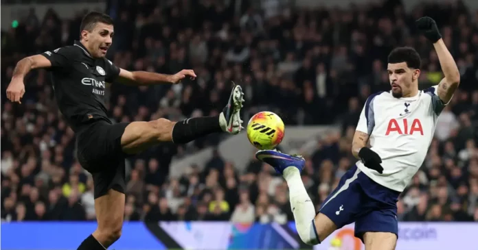 Manchester City ka humbur mundësinë për të ngushtuar diferencën me liderin Arsenal në Premier Ligë, pas një barazimi 2:2 ndaj Tottenhamit në udhëtim, në ndeshjen kryesore të xhiros së 24-t.