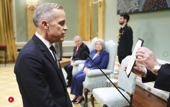 Carney, një ish-ekzekutiv i Goldman Sachs pa përvojë në politikë, bëhet kryeministri i 24-të i Kanadasë. Ai tha se mbrojtja e punëtorëve kanadezë dhe familjeve të tyre përballë veprimeve të pajustifikuara tregtare dhe rritja e ekonomisë do të jenë prioritetet e tij kryesore.