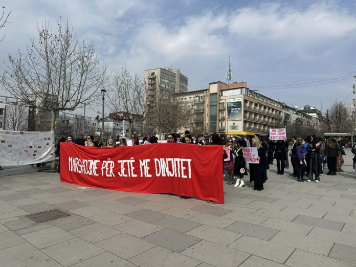 Në Ditën Ndërkombëtare të Gruas, Kolektivi për Mendim dhe Veprim Feminist organizoi sot një marsh në Prishtinë për të kërkuar barazi gjinore, të drejta dhe përfaqësim të grave në të gjitha sferat e jetës shoqërore dhe politike.