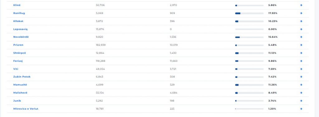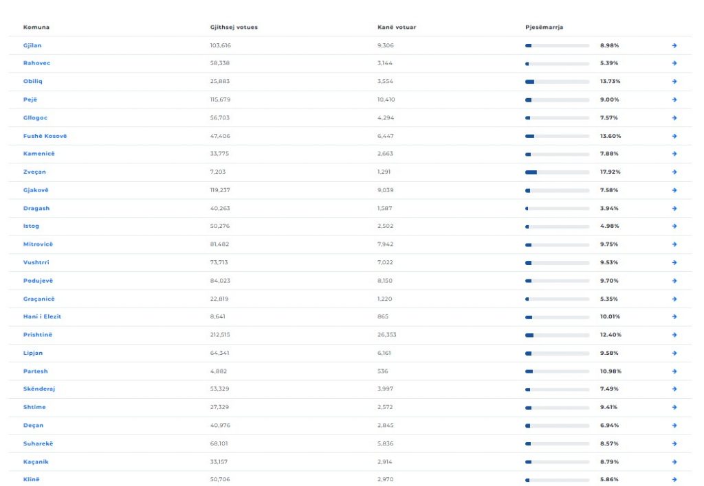Sipas statistikave të publikuara online nga KQZ, më së shumti dalje të qytetarëve për të votuar janë në Zveçan ku kanë dalur nga 1 e 291 persona nga 7,203 të cilët janë dalur, edhe në Ranillug ku prej 5 mijë e 69 prej tyre janë dalur 909 persona, duke vijuar. Ndërsa në Qendrat e tjera varion ky numër votues, në Gjilan deri më tani kanë dalur 9 mijë e 306 persona nga mbi 100 mijë votues.