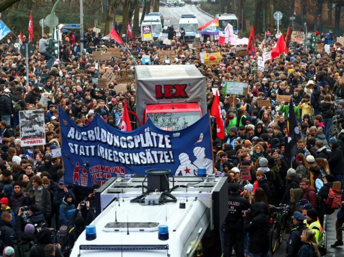 Iniciativa “Greva shkollore kundër shërbimit ushtarak” organizoi demonstrata në më shumë se 90 qytete, duke përfshirë qytetet Hamburg, Bochum, Bielefeld, Munster, Këln, Duseldorf dhe Shtutgart.