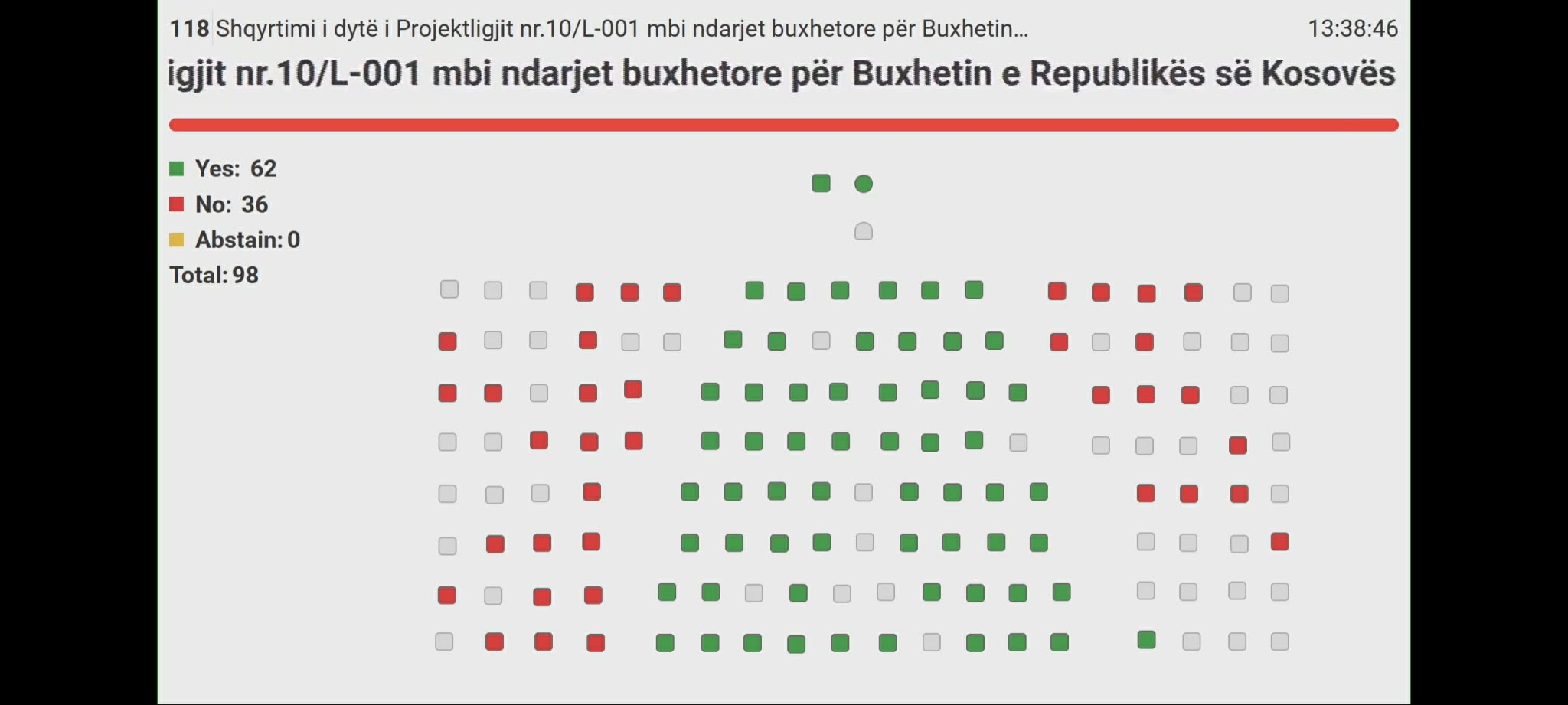 Me 62 vota “për”, 36 “kundër” dhe asnjë abstenim, Kuvendi i Kosovës ka miratuar buxhetin e Kosovës për vitin 2026, i cili kap vlerën prej 4 miliardë eurosh.