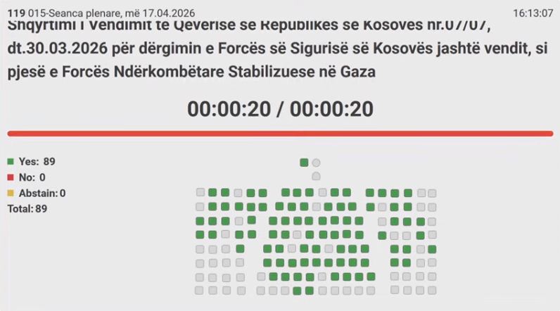 89 deputetë kanë votuar pro teksa gjatë këtij votimi nuk pati asnjë votë kundër dhe asnjë abstenim, njofton Dukagjini.