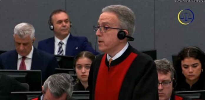 Avokati Lluka Mishetiq që përfaqëson ish-presidentin, Hashim Thaçi, në gjyqin e madh në Hagë, e ka nisur fjalën e tij.