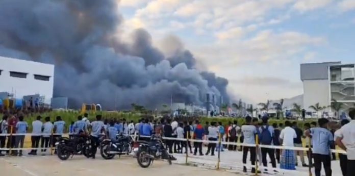 Fire breaks out at Tata Electronics manufacturing unit in Hosur, Tamil Nadu. It is learnt that around 1,500 workers were on duty. A company spokesperson said: “There has been an unfortunate incident of fire at our plant in Hosur, Tamil Nadu. Our emergency protocols at the plant… pic.twitter.com/099tak7AgP
