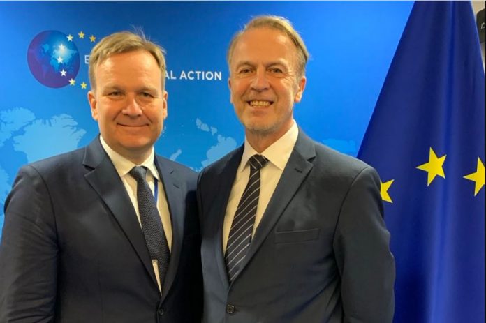 Ambasadori i Bashkimit Evropian në Kosovë, Aivo Orav, ka takuar të dërguarin e posaçëm për dialogun mes Kosovës dhe Serbisë, Peter Sorensen, për t’i dhënë mbështetje në misionin e tij të ri.