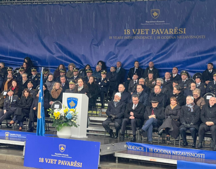 Presidentja e Kosovës, Vjosa Osmani, në ceremoninë e shënimit të 18-vjetorit të Pavarësisë, ka deklaruar se Republika e Kosovës lindi nga sakrifica dhe qëndresa e fortifikuar e popullit të saj.