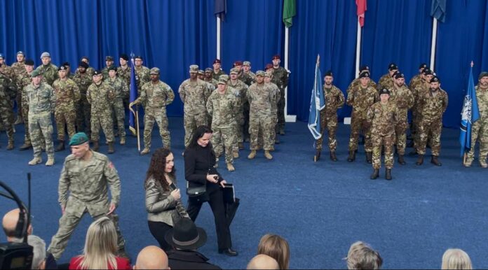Në ceremoninë e Ndërrimit të Komandës në Shtabin e KFOR-it po merr pjesë edhe presidentja e Kosovës, Vjosa Osmani.