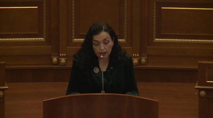 Presidentja e vendit, Vjosa Osmani në foltoren e Kuvendit ka deklaruar se ajo është më shumë e interesuar për nënshkrimin e Presidentit të Shteteve të Bashkuara të Amerikës [SHBA] sesa nënshkrimi i presidentit serb, Aleksandër Vuçiqit.