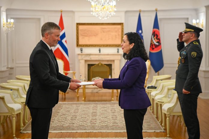 Presidentja e Republikës së Kosovës, Vjosa Osmani, ka pranuar sot letrat kredenciale nga ambasadori jorezident i Norvegjisë për Republikën e Kosovës, Andreas Gaarder, të cilin e ka uruar për detyrën.