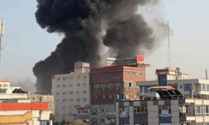 Pamje të paverifikuara në rrjetet sociale shfaqin re tymi që ngrihen në qiell mbi Kabul.