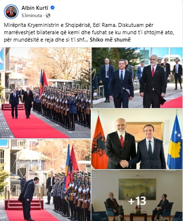 Rama uroi kryeministrin Kurti për fitoren në zgjedhjet e 28 dhjetorit dhe për formimin e Qeverisë, për çka kryeministri Kurti shprehu falënderimin e tij dhe vullnetin e Qeverisë që drejton për forcimin dhe zgjerimin e marrëdhëniet ndërmjet Kosovës dhe Shqipërisë në shërbim të qytetarëve dhe mbarë kombit.