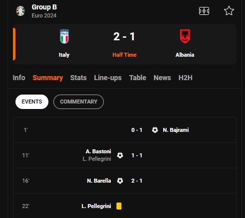 Kurse vetëm pesë minuta më vonë, Barella me një gol nga distanca përmbysi rezultatin duke kaluar në epërsi ndaj Shqipërisë.