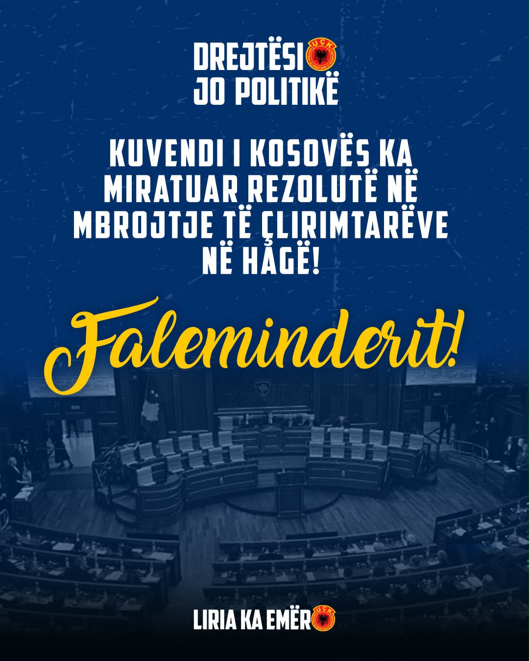 Platforma qytetare Liria ka Emër përshëndet miratimin nga Kuvendi i Republikës së Kosovës të rezolutës në mbrojtje të çlirimtarëve që po gjykohen në Hagë.