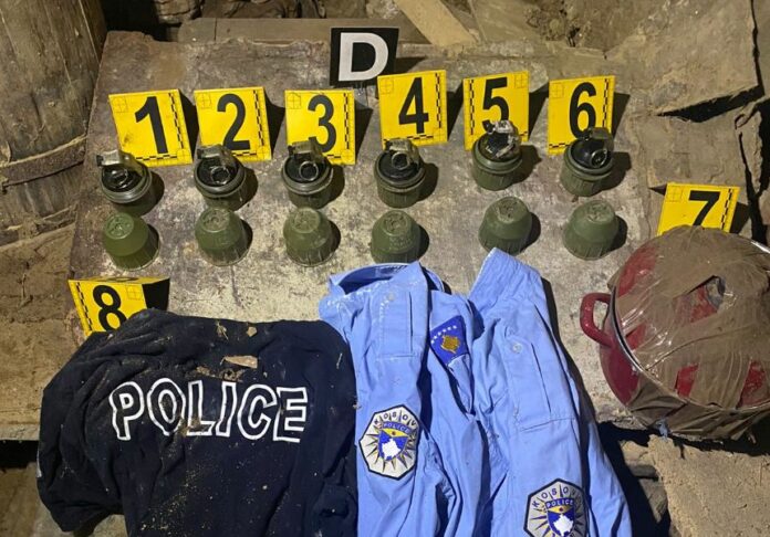 Policia e Kosovës ka bërë të ditur se ka gjetur granata dore dhe disa pjesë të uniformave të Policisë së Kosovës në një shtëpi të braktisur në fshatin Dobroshevina të Zubin Potokut.
