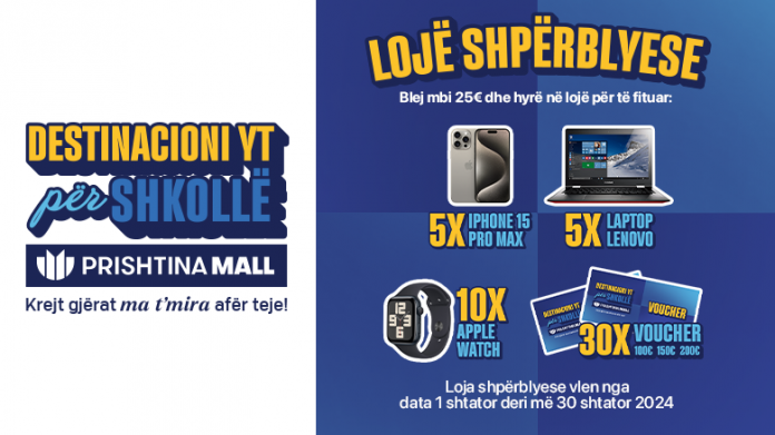 Prishtina Mall, qendra tregtare më e madhe në Evropën Juglindore, prezanton lojën shpërblyese “Destinacioni yt për shkollë”, e cila do t’ju sjellë shpërblime të shkëlqyera.