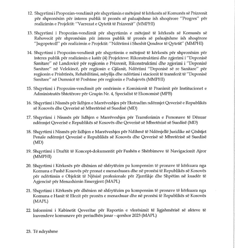 Në këtë mbledhje në rend dite do të jenë 23 pika.