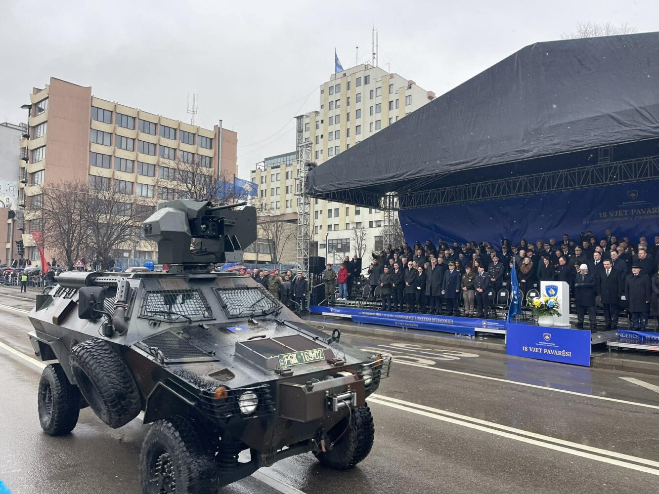 Jo në sheshet tradicionale të Prishtinës, por këtë herë në rrugën “Luan Haradinaj”, ku historia ka mbetur e gjallë, kanë parakaluar trupat e Forcës së Sigurisë së Kosovës dhe Policisë së Kosovës, duke shënuar përvjetorin e 18-të të pavarësisë.