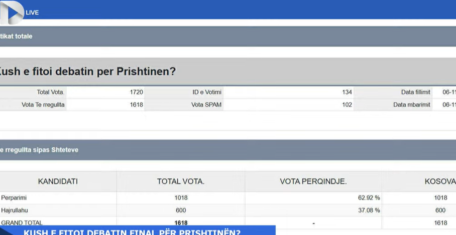 Qytetarët që ndoqën Debat Plus në TV Dukagjini dhanë mendimin e tyre duke votuar për fituesin e debatit mes kandidatëve për kryetar të Prishtinës.