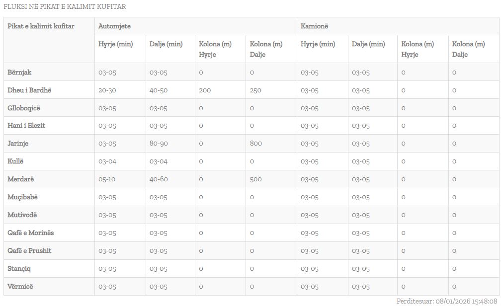 Më poshtë mund të gjeni pritjet në hyrje-daljet në gjitha pikat kufitare të vendit.