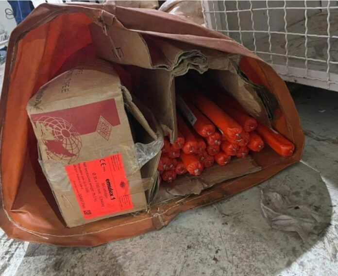 Megjithatë, gjatë kontrollit është hasur në mallra të padeklaruara, përkatësisht mallra të ndaluara dhe të rrezikshme (eksploziv), të vendosura në thasë dhe pako, me peshë rreth 300 kilogramë, të cilat ishin fshehur në bagazhin e automjetit dhe të kamufluara me pajisje peshkimi.