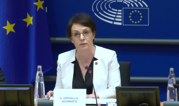 Ministrja e Punëve të Jashtme të Kosovës, Donika Gërvalla-Schëarz, po mban fjalimin e saj para Komitetit për Punë të Jashtme të Parlamentit Europian