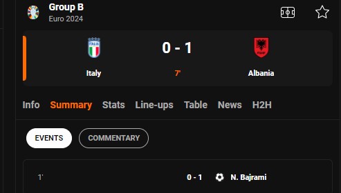 Shqipëria ka arritur të kalojë menjëherë në epërsi ndaj Italisë.